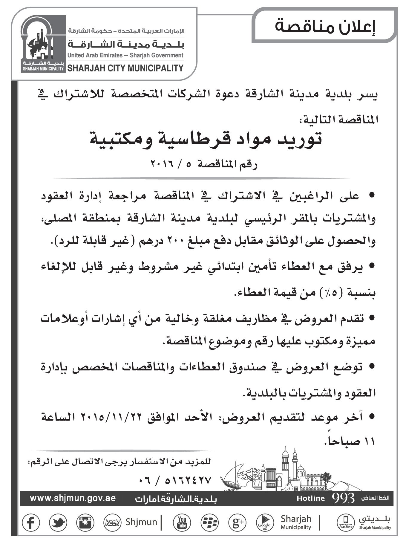 رقم بلدية الشارقة