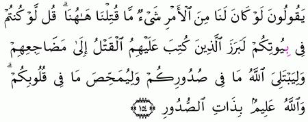 ال ج اه ل ي ة ي ق ول ون ه ل ل ن ا م ن الأ م ر م ن ش ي ء ق ل إ ن الأ م ر ك ل ه ل ل ه ي خ ف ون ف ي.