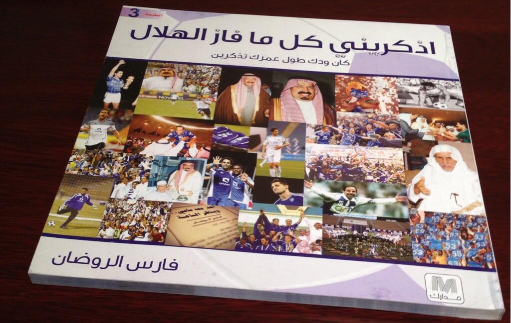 هذا الكتاب الذي اصبح محط اهتمام الكثير من محبي نادي الهلال الذي يتحدث بشكل كبير عن نادي الهلال السعودي ويميز هذا النادي عن غيره من الاندية السعودية حيث استطاع ان يوصف لاعبي الهلال. اذكريني كل مافاز الهلال كلمات لفارس الروضان الكلمات الشعرية الجميلة والرائعة التي تحتوي على الكثير من الاحاسيس الجميلة والرائعة هذه الكلمات الجميلة التي اصبح الجميع يقتبسها من اجل مشاركتها مع فرحة الهلال بالفوز. أو أكسير الحياة ـ. اذكريني كل ما فاز الهلال كان ودك طول عمرك تذكرين كتاب خطه عاشق بحروف ذهبية اسلوبه شيق واغانيه عذبه الصور كان ساحره ونقلتني الى تلك الازمنه الجميلة اما الاقتباسات.