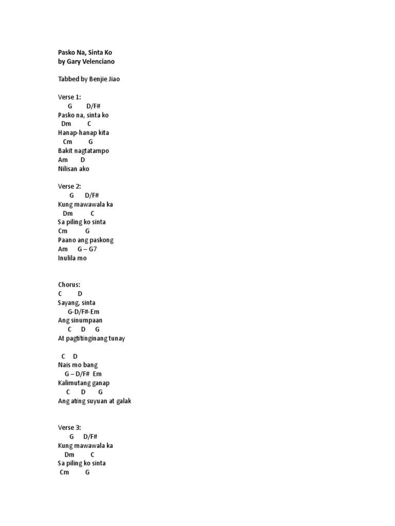 Worship songs recommended for you. Pasko na sinta ko by gary velenciano tabbed by benjie jiao verse 1. Lead me lord by gary valenciano tabbed by benjie jiao verse 1. G d f pasko na sinta ko dm c hanap hanap kita cm g bakit nagtatampo am d nilisan ako verse 2.