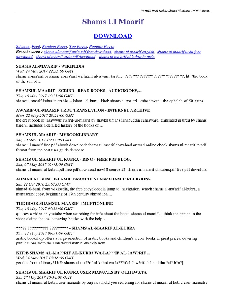 Shams al ma arif course is now live. Al bunt thrtib al da awat rf the shams al ma arif whether kubra or not has become a popular and wide spread text because of its practical use and its matter oi fact and non intellectual approach of the mysterious world of the unseen the opposite is true for a text by al bnni which so far has escaped the atten tion of scholars. While current scholarship has cast doubt on al buni s authorship of the received version of the shams al. Shams ul moarif addeddate 2018 01 06 06 45 12 identifier shamsalmarif identifier ark ark 13960 t6q01mq25 ocr.